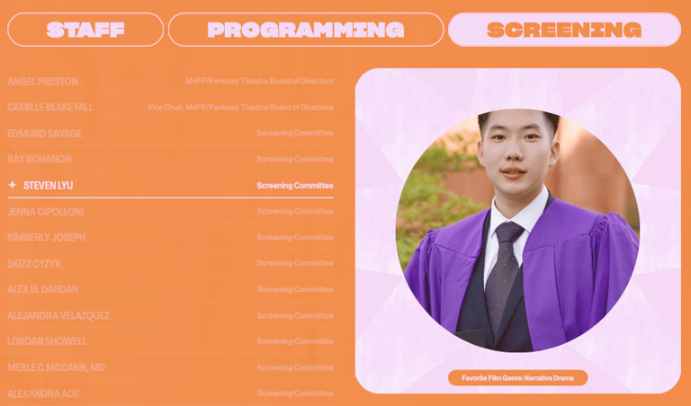 Steven Lyu is an award-winning director, producer, and cinematographer from Beijing, China. With 7+ years of experience in film and television, he currently serves on the Screening Committee for the Maryland Film Festival (MDFF).